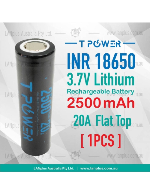 TPower 18650 2500mAh 3.7v High Drain 20A Rechargeable Flat Top Li-ion Battery