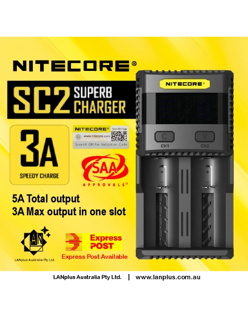 Nitecore SC2 3A 2 slot Super Charger 4 20700 Lithium18650 Li-ion w/ 2.1A USB Out