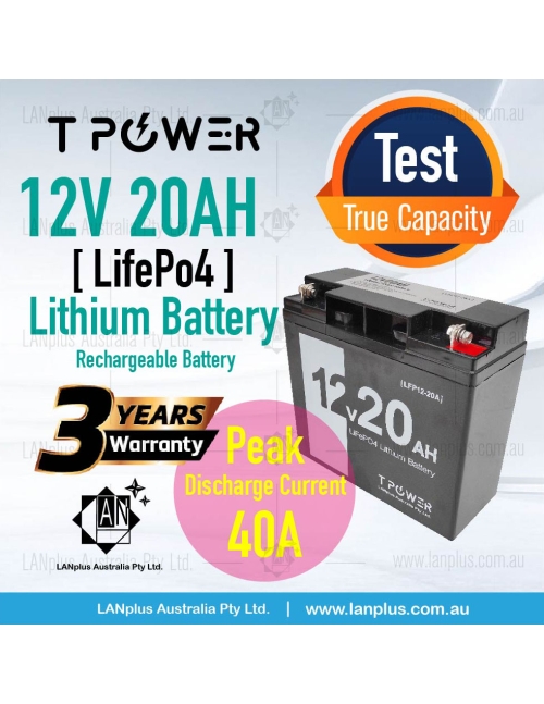 12V 20AH LiFePO4 Lithium Battery Rechargeable Light Weight 2.54Kg 3-Year Warranty