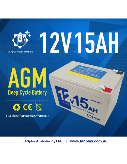 T power EV12-15 12V 15AH AGM Sealed Lead-Acid Battery