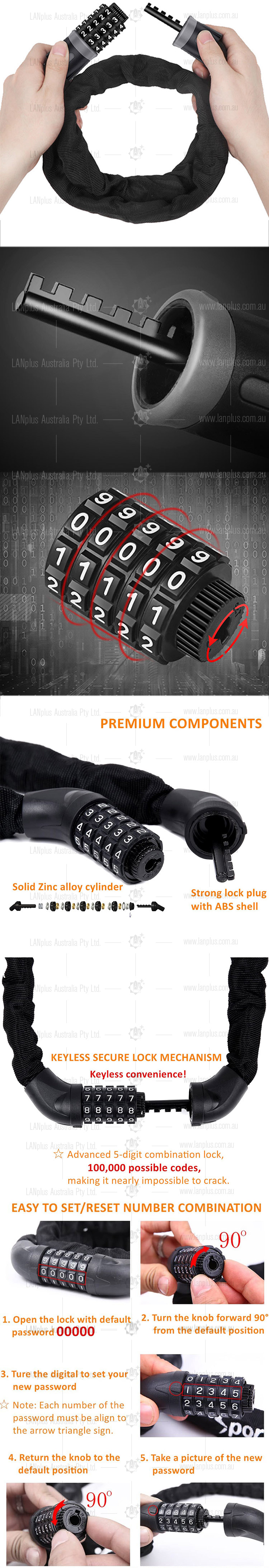 Heavy Duty 5 Digit Chain Keylock Lock Security Reinforced Metal Bike Bicycle