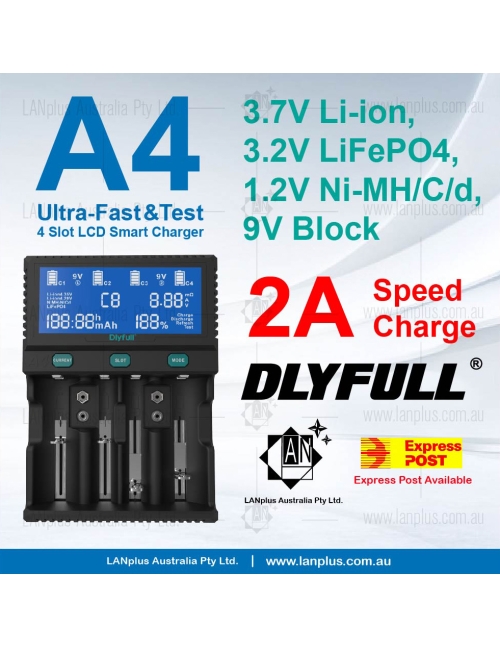 Dlyfull A4 Digital Smart 4 slot Battery Tester Charger 2.0A F 18650 Li-ion 26650 C D CR123a