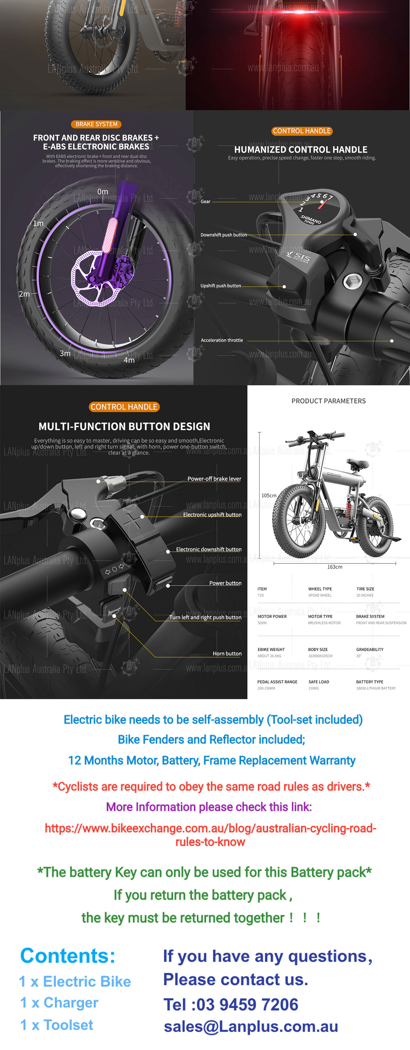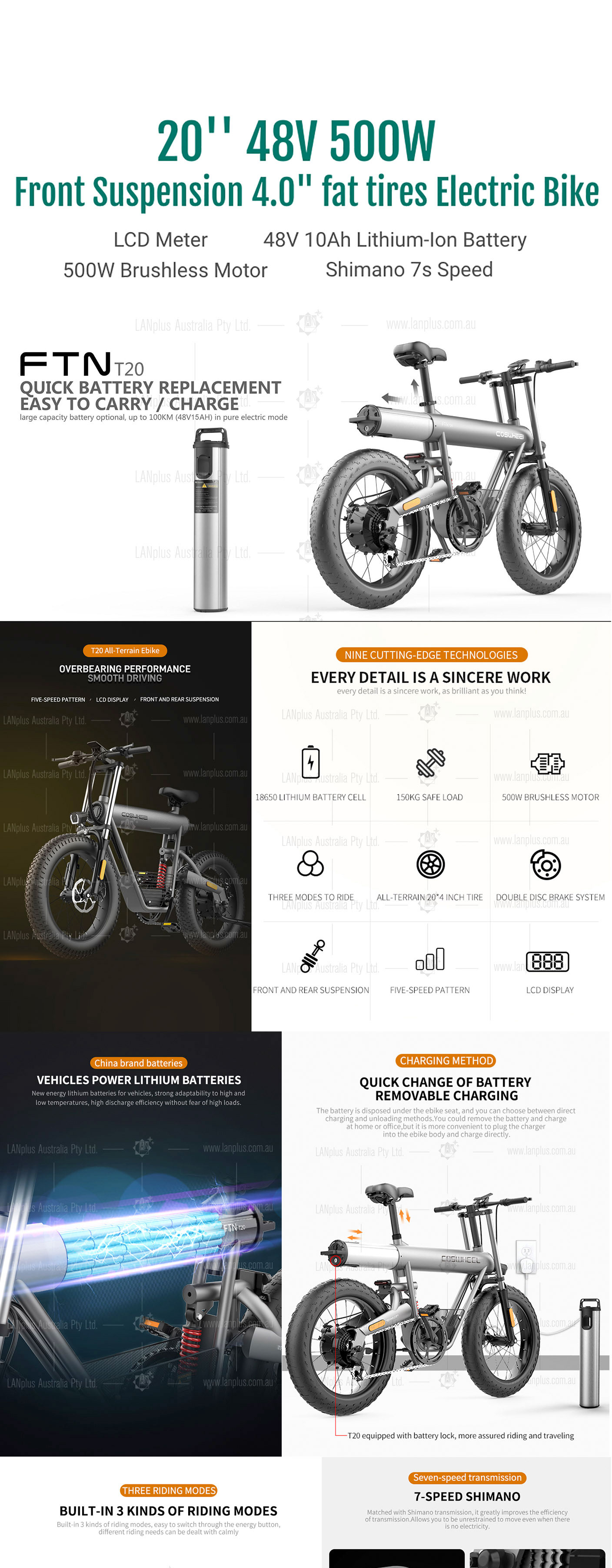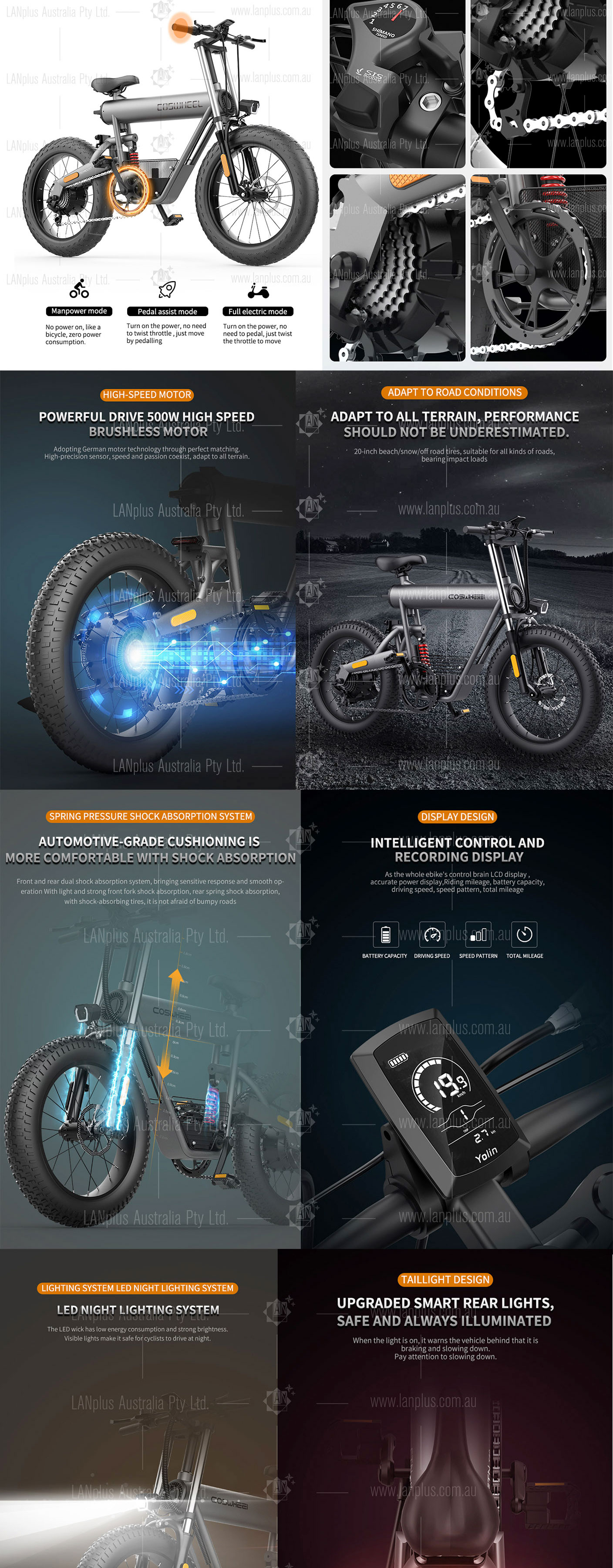 Coswheel FTN T20 500W Electric Bike 4" Fat Tyre eBike Bicycle 48V 10AH > super73