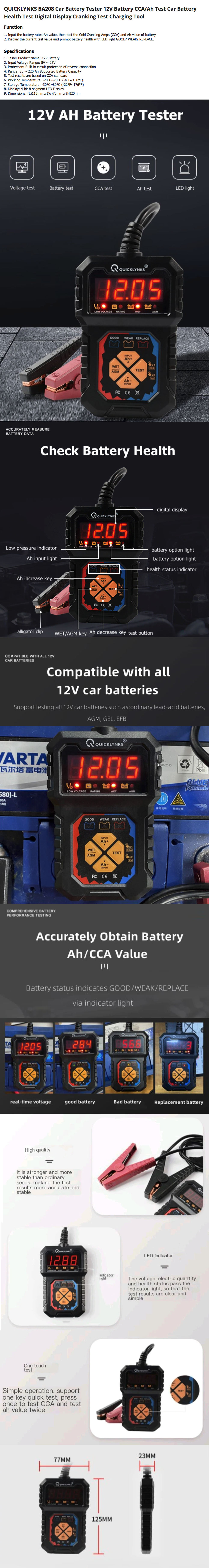 12V Battery CCA/Ah Test Car Battery Health Tester Digital Display Cranking Tester BA208 for Car Flooded GEL AGM EFB battery