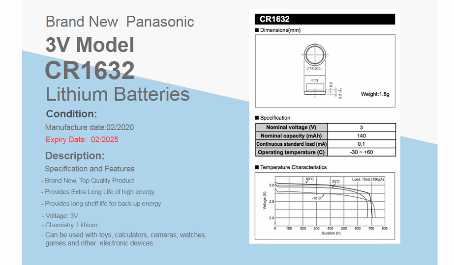 5PCS Panasonic CR1632 3V ECR1632 GENUINE Coin Button Battery Alarm Car Key