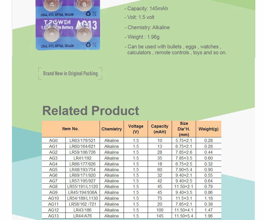 Brand new AG13 LR44 Battery G76 A76 SR44W Button Cell Batteries wholesale