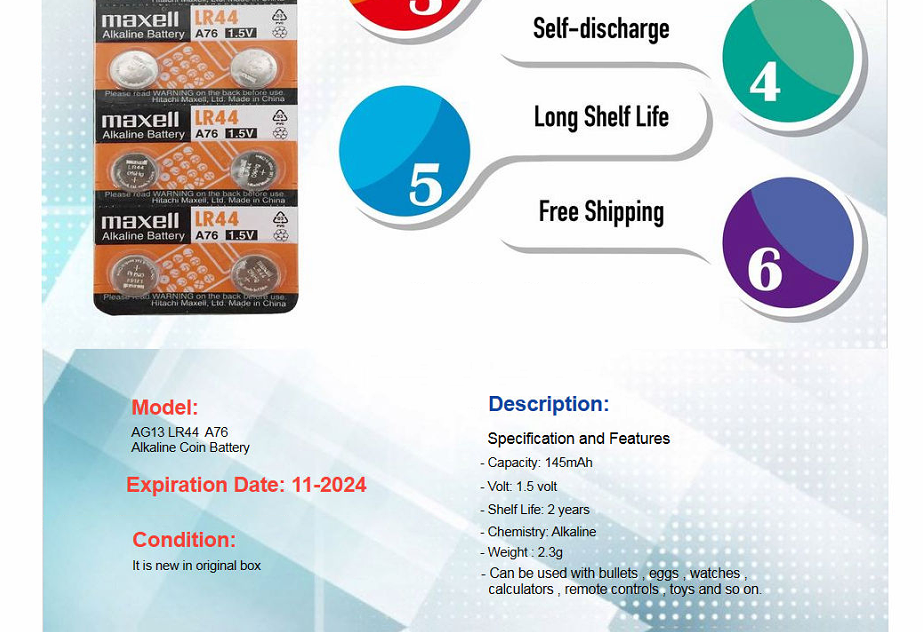 20x LR44 AG13 Battery G76 A76 SR44W Button Cell Batteries wholesale