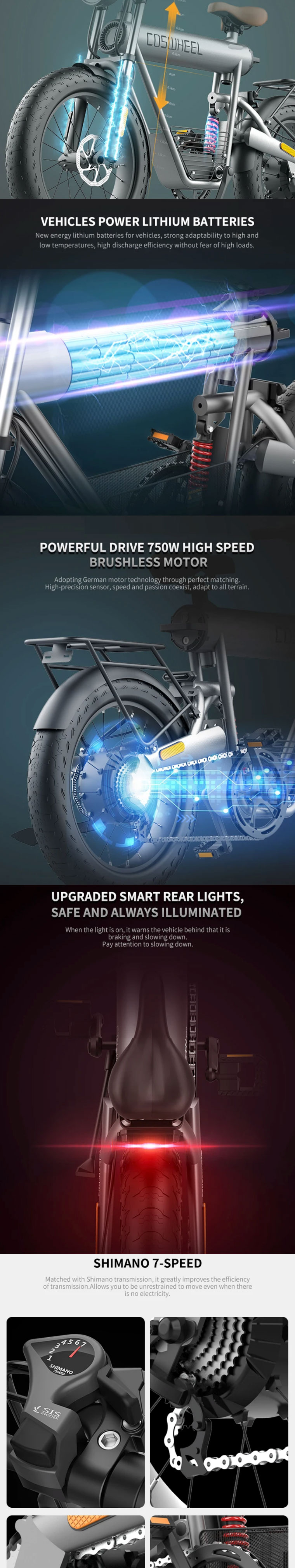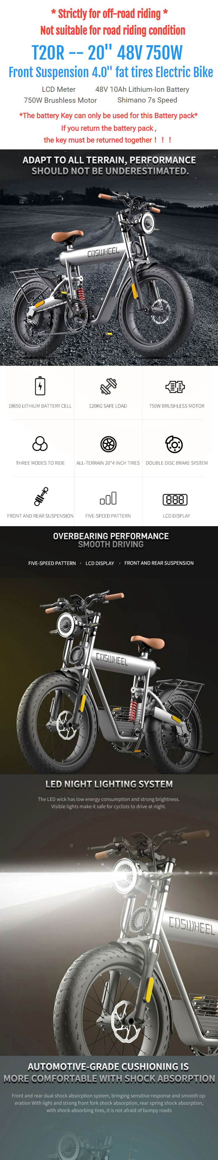 Coswheel T20R 20" Mountain Vintage eBike 750W 48V 10Ah 4" Fat Tires super 73