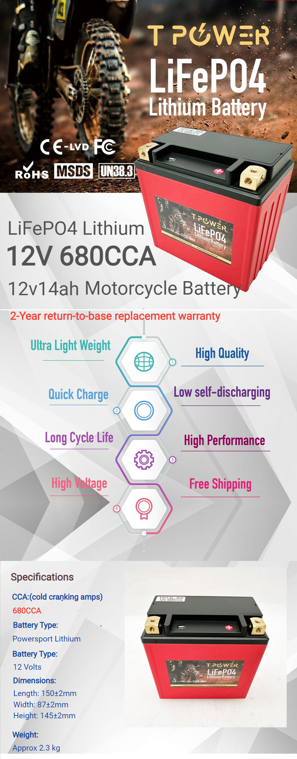 12v 100Ah Lithium Battery LiFePO4 Iron Phosphate Deep Cycle RV Camping 4WD Tpower