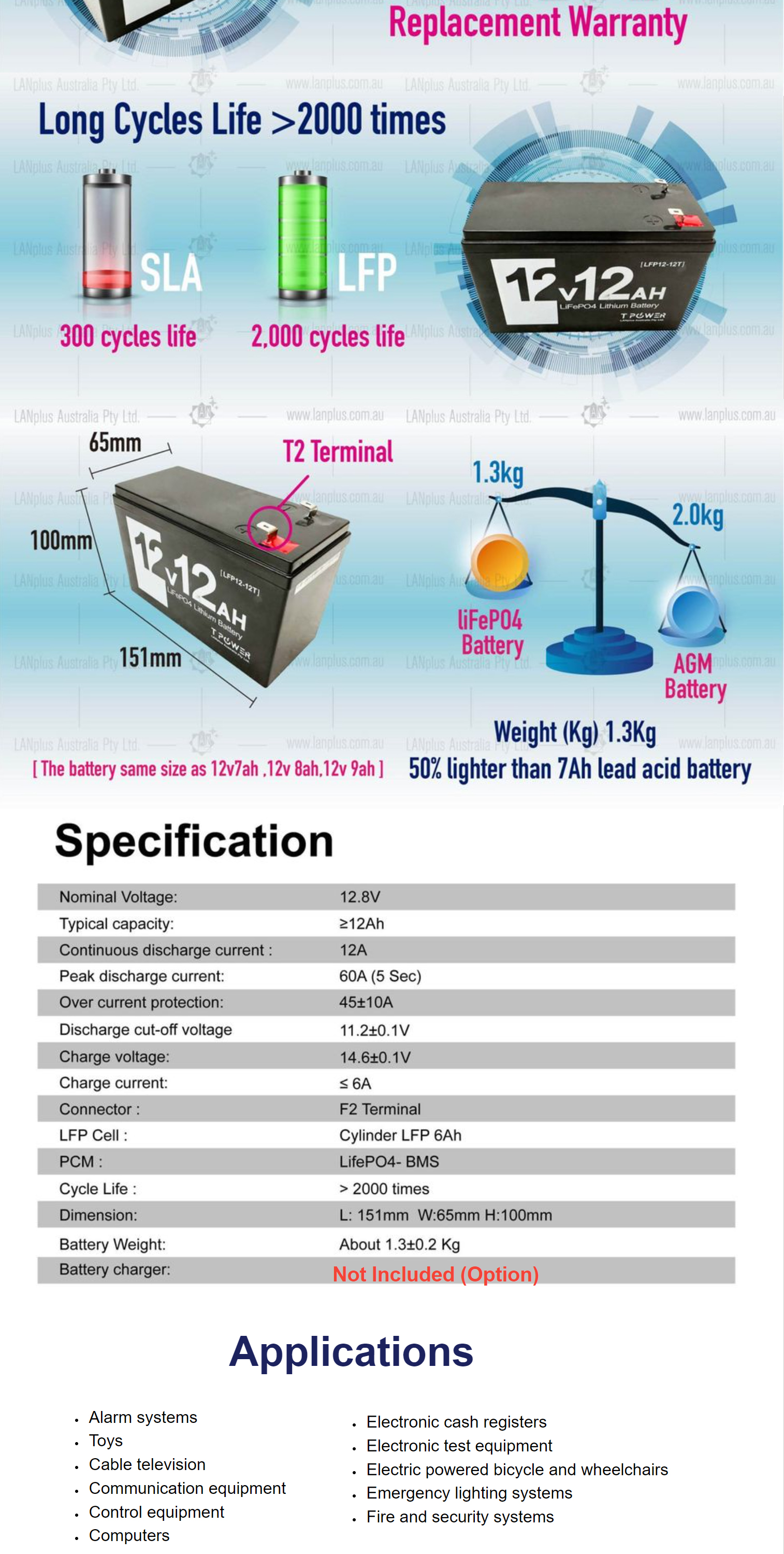 12V 12Ah LiFePO4 Lithium Rechargeable Battery same size as 12v 7ah 12v 9ah 12v 8