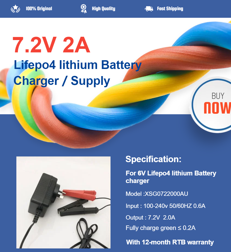 7.2V 2A LFP Lithium Battery charger for 6V Lifepo4 lithium battery AU
