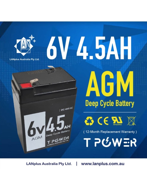 T power DC 6V4.5AH AGM Sealed Lead Acid Rechargeable Battery