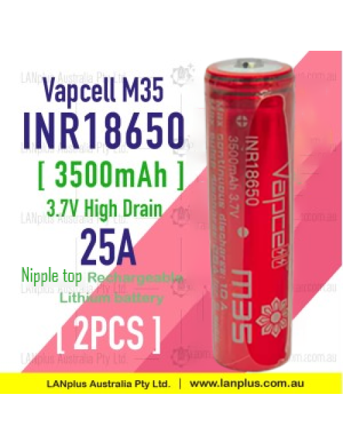 2x M35 18650 3500mAh 25A 3.7V nipple top HIGH CURRENT Rechargeable lithium Battery
