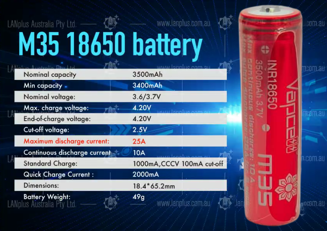 2x M35 18650 3500mAh 25A 3.7V HIGH CURRENT Rechargeable lithium Battery
