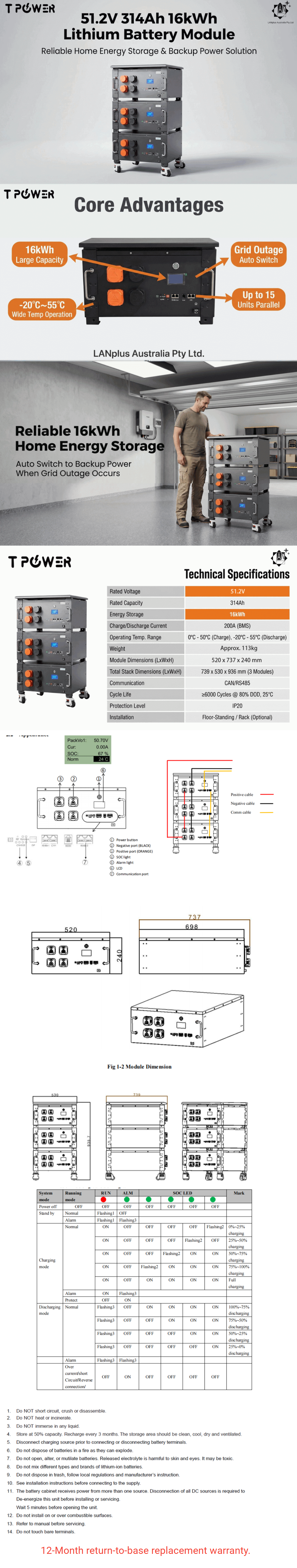 3X 48V 314Ah 16kWh LiFePO4 Battery Pack 200A BMS Parallel Rack NOT Included