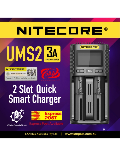 Nitecore UMS2 3A Smart Battery Charger 2-Slot Li-ion Ni-Cd Ni-MH CR123A AAA i2