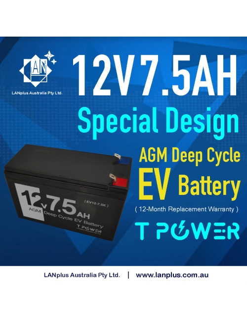 12V 7.5AH AGM Deep Cycle EV Battery 4 Electric Bike Scooter
