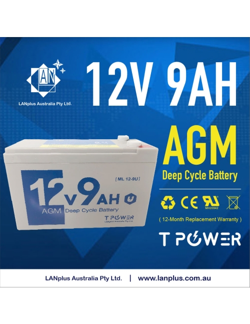 T power ML12-9U 12V 9AH Sealed Lead-Acid Battery with F2 Terminals